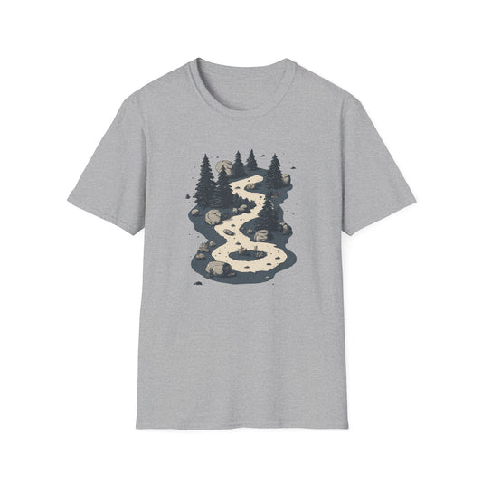 Rustic Minimalist Hiking Trail Shirt - Pine Trees and Rocks Forest Path Design - Outdoor Nature Lover Apparel Gift